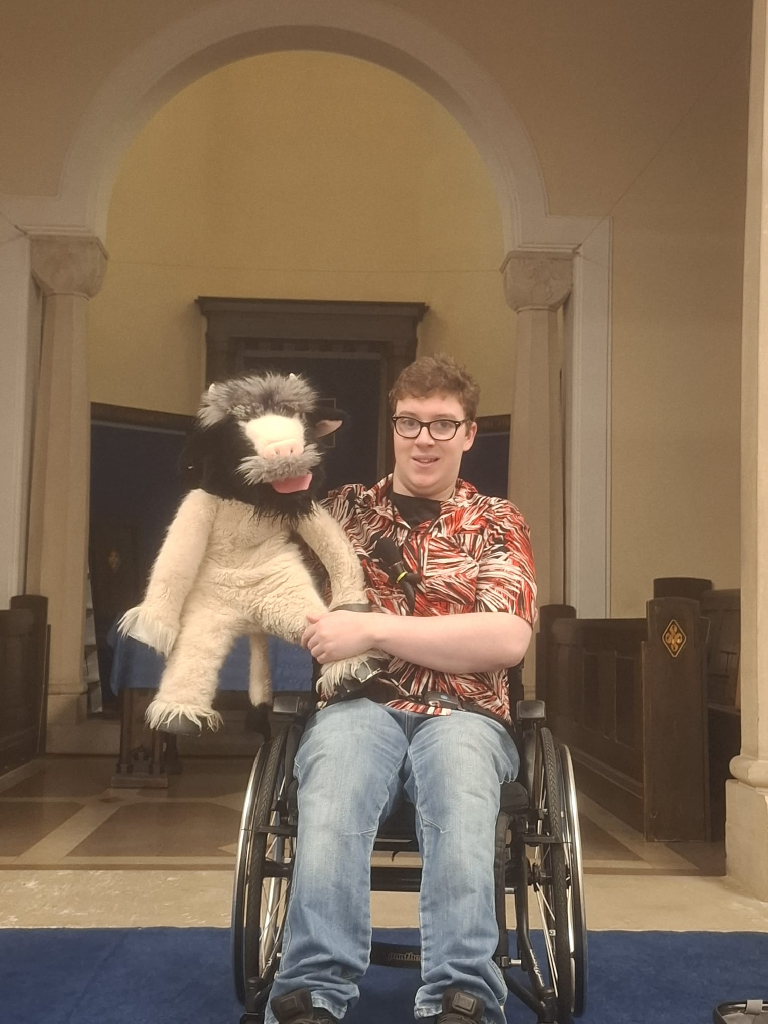 Elliot is articulate, quick-witted, and a master of puppetry and Ventriloquism. His story began when he was at school using a small stuffed toy Cow to “speak” for him during moments of anxiety when he was younger. He often cites the toy as his imaginary friend – his only friend. As he became older, the toy became a professionally made puppet. He used humour to mask his anxiety, and soon, the anxiety transformed into Elliot having fun with his tutors and fellow students alike.