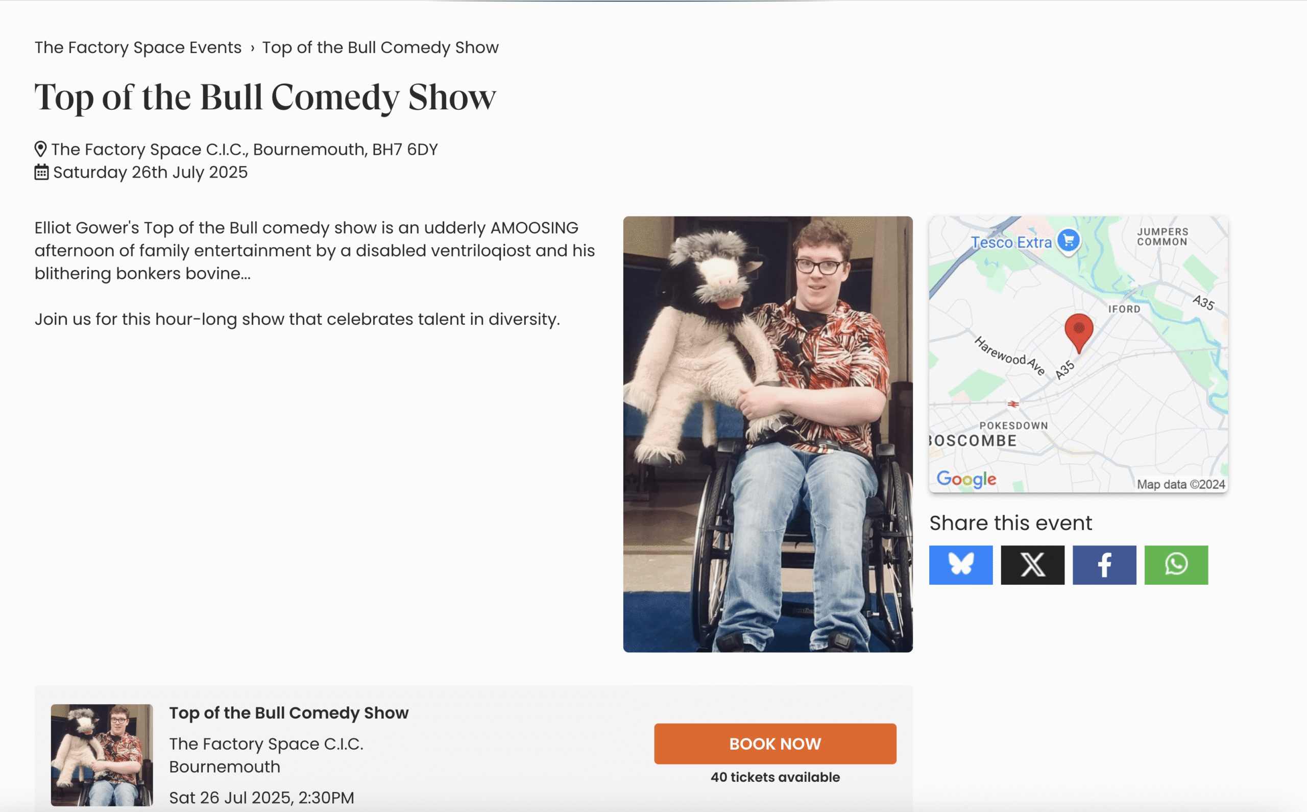 - Regular shows at the Black Cherry Comedy Club in Bournemouth.