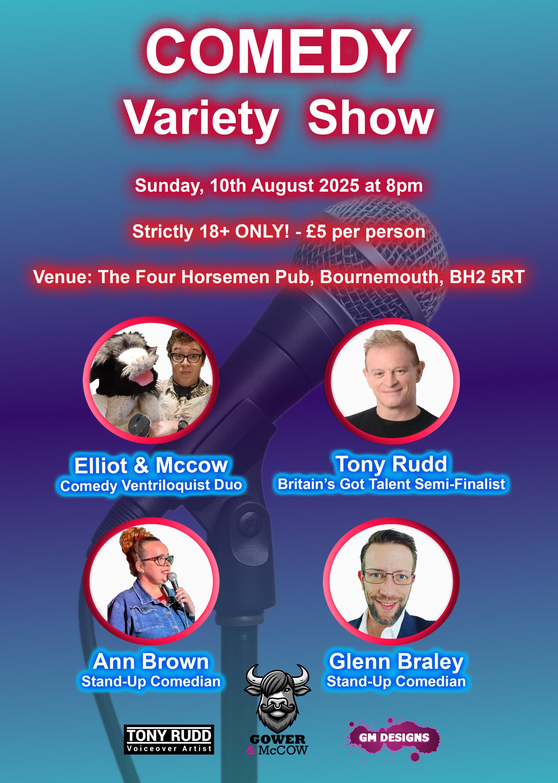 Comedy Variety Show – The Four Horsemen Pub, Bournemouth – Sunday 10th August – 8pm